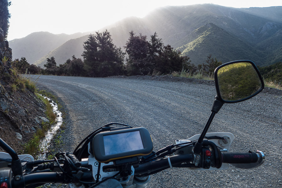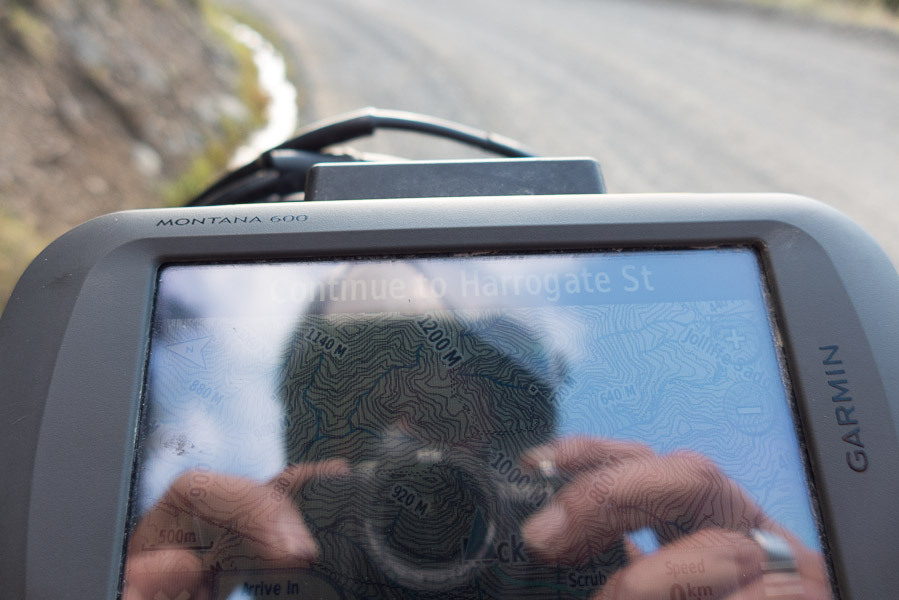 Jon's bike ran out of fuel at Waiuta. Jamie helped ride the bike to a nearby home.