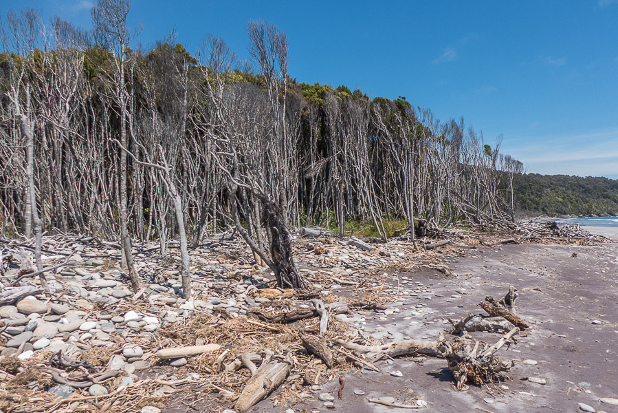 Jon's campsite is at the treeline, just by the dried out grasses.