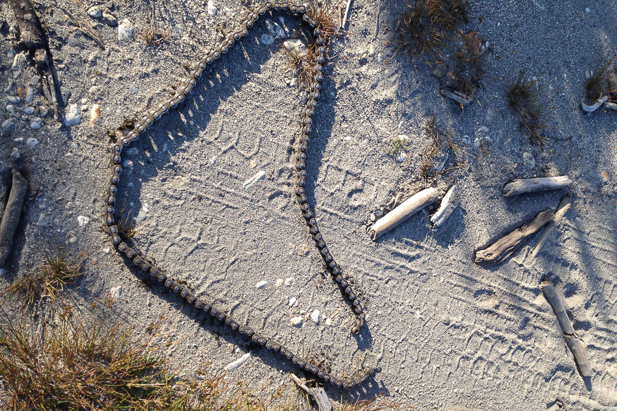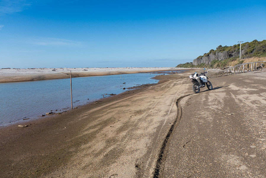 The rising tide is erasing my tracks. Good think I moved the bike!