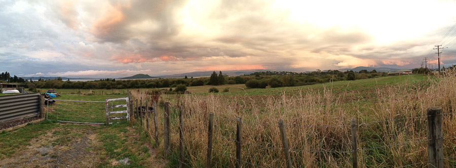 A farmer for Landcorp Wairakai provides me a place for my tent and a hot meal.